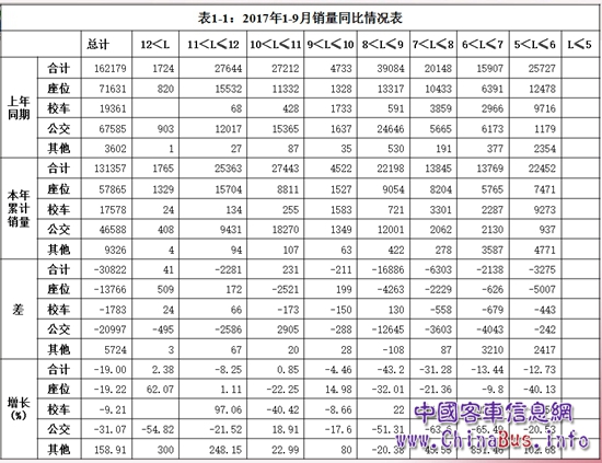 佘振清介紹,2017年1—9月份,中國客車統(tǒng)計信息網(wǎng)重點關(guān)注的50家企業(yè)累計銷售5米以上客車131357輛(為了保證數(shù)據(jù)的統(tǒng)一,剔除了海獅系列),同比下降19%,其中座位客車(公路客車)下降19.22%,校車下降9.21%,公交客車下降31.07%,其他客車增長158.91%。