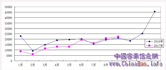1—9月份,出口各類客車21724輛,出口金額92.29億人民幣,出口量比上年同期下降2.81%,出口額增長8.01%。其中,大中型客車出口16384輛,同比增長19.18%,出口金額87.91億人民幣,同比增長10.68%。