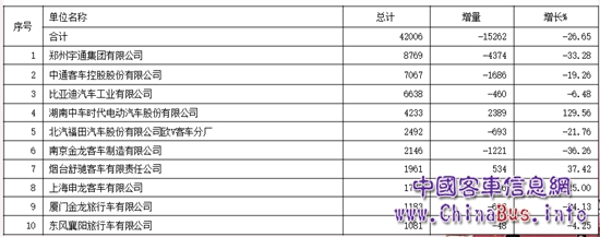 今年前9個月傳統(tǒng)客車銷量列前10位的企業(yè):