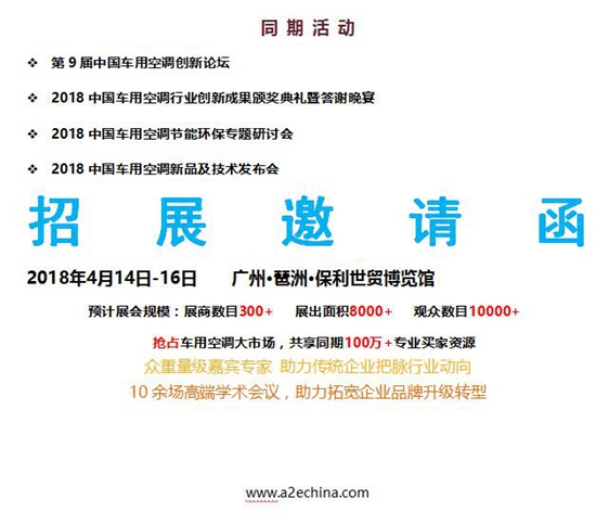 近年來,中國政府逐步增大對汽車產(chǎn)業(yè)的關(guān)注與政策支持力度,由中國汽車工業(yè)協(xié)會汽車空調(diào)委員會主辦,廣州市巴斯特會展有限公司承辦的“廣州國際車用空調(diào)及冷藏設(shè)備展覽會”旨在搭建汽車制冷行業(yè)交流展示平臺,致力于推動我國汽車空調(diào)產(chǎn)業(yè)的健康快速發(fā)展。