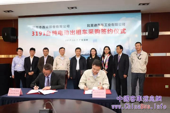 12月7日,深圳市西湖股份有限公司與比亞迪汽車工業(yè)有限公司“3191輛純電動出租車采購簽約儀式”在深圳坪山比亞迪總部舉行。作為深圳市交通運(yùn)輸行業(yè)的龍頭企業(yè),西湖股份一直積極響應(yīng)深圳節(jié)能減排、保護(hù)環(huán)境的號召。本次單筆最大規(guī)模純電動出租車采購項(xiàng)目的簽約,標(biāo)志著深圳市純電動出租車推廣已經(jīng)全面駛?cè)肟燔嚨?,將加速深圳市出租車全面電動化的進(jìn)程。