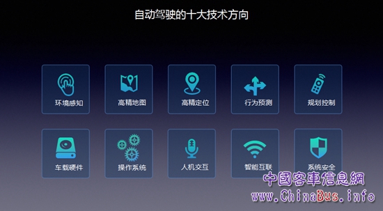 當前,自動駕駛的十大技術(shù)方向包括:環(huán)境感知、高精地圖、高精定位、行為預測、規(guī)劃控制、車載硬件、操作系統(tǒng)、人機交互、智能互聯(lián)、系統(tǒng)安全。百度正在為此不斷努力。