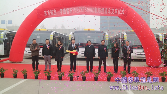 在交車儀式現(xiàn)場,東方航空領(lǐng)導(dǎo)表示:“東方航空,是我國三大國有骨干航空運輸集團之一。作為一家現(xiàn)代航空企業(yè),我們以‘世界品位,東方魅力’的品牌核心價值,不斷追求服務(wù)品質(zhì)的提升。而宇通作為中國客車第一品牌,我們已合作多年,質(zhì)量可靠,值得信賴。隨著公司規(guī)模的不斷擴大,本次選購的19輛宇通機場擺渡車,將是我們合作的又一里程碑”。