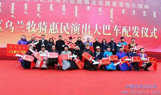 全區(qū)烏蘭牧騎惠民演出大巴車配發(fā)儀式現(xiàn)場