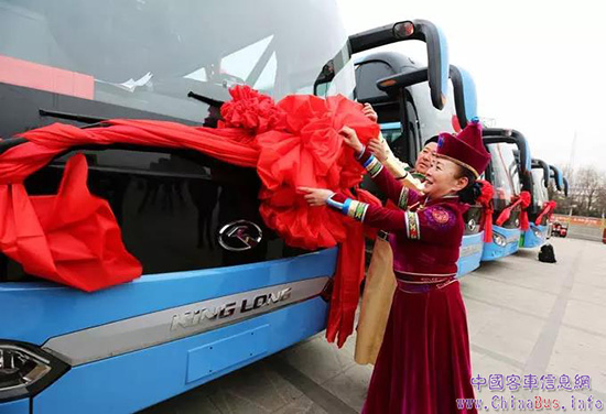 當(dāng)天向烏蘭牧騎配發(fā)的演出大巴為金龍客車新五系XMQ6105AY。烏蘭牧騎是全國文藝戰(zhàn)線上的一面旗幟,也是內(nèi)蒙古自治區(qū)對外文化交流的名片和驕傲。內(nèi)蒙古自治區(qū)政府高度重視烏蘭牧騎演出車項目,在儀式現(xiàn)場,自治區(qū)黨委常委、宣傳部部長白玉剛一行詳細詢問了演出大巴的配置,為車輛配備WIFI、USB接口等人性化設(shè)計點贊。