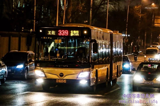 在深夜中行駛的福田歐輝公交車