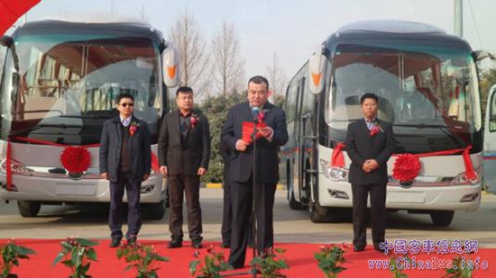 1月26日,66輛宇通ZK6816H5Y公路客車正式交付天津市華榮客運(yùn)有限公司(以下簡(jiǎn)稱“華榮客運(yùn)”),華榮客運(yùn)總經(jīng)理趙國(guó)華,宇通客車營(yíng)銷副總監(jiān)王文韜等領(lǐng)導(dǎo)出席交車儀式。