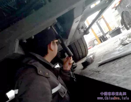 △大年初一,駐點(diǎn)服務(wù)工程師聶新煜和王邵祁正在為車輛做春運(yùn)“體檢”。