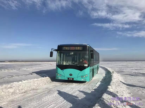 比亞迪K8純電動(dòng)公交車挑戰(zhàn)冰雪極寒
