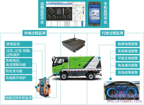 采用了自制整車控制器,通過CAN總線對(duì)整車通訊與控制,實(shí)現(xiàn)整車信息共享與最優(yōu)控制。智能LCD儀表具有良好的人機(jī)界面且設(shè)有兩級(jí)故障報(bào)警機(jī)制,可顯示、存儲(chǔ)車輛運(yùn)行過程的各種參數(shù),使駕駛員及時(shí)準(zhǔn)確知道整車狀態(tài)。車輛配置智能終端系統(tǒng),可通過互聯(lián)網(wǎng)和手機(jī)全方位監(jiān)控車輛,3分鐘內(nèi)顯示在監(jiān)控平臺(tái)頁(yè)面中,5分鐘內(nèi)發(fā)送短信到負(fù)責(zé)人手機(jī)中以快速備件維修或啟動(dòng)應(yīng)急,車輛高效運(yùn)營(yíng)提供有效保障。