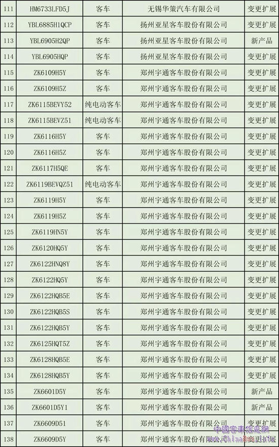 以下為《營(yíng)運(yùn)客車安全達(dá)標(biāo)車型(第5批)》公示: