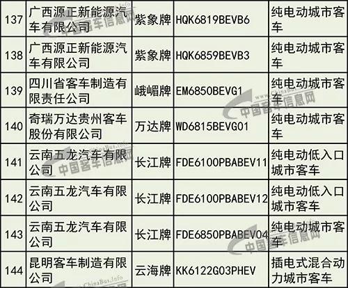 據中國客車信息網統(tǒng)計,該批上榜的144款新能源客車中,純電動客車140款、插電式混合動力客車3款、燃料電池客車1款。