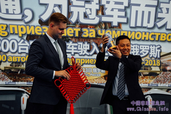 交車儀式上,身著民族盛裝的俄羅斯姑娘為來自中國的貴賓獻上代表待客最高禮遇的面包和鹽;中方代表則將象征友誼和智慧的中國結禮贈俄方。圣彼得堡運輸協(xié)會授予宇通“最佳中國伙伴”榮譽,列寧格勒州運輸協(xié)會授予宇通“最佳旅游巴士供應商”榮譽,并期待雙方在交通運輸領域有更深入的合作。宇通客車、SpbTransBus企業(yè)負責人分別致辭,讓這份共贏的期盼,續(xù)奏雙方合作樂章。