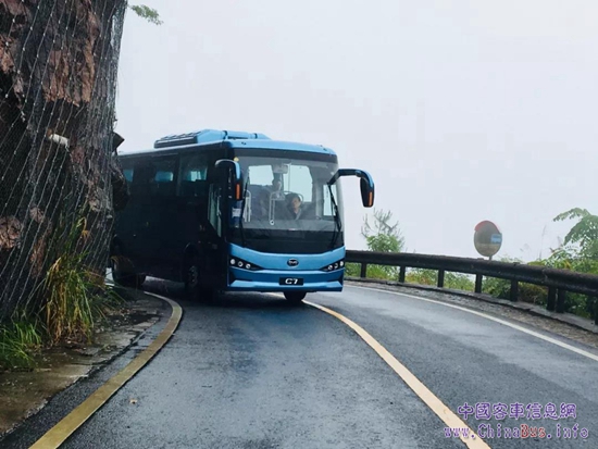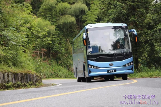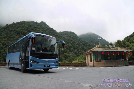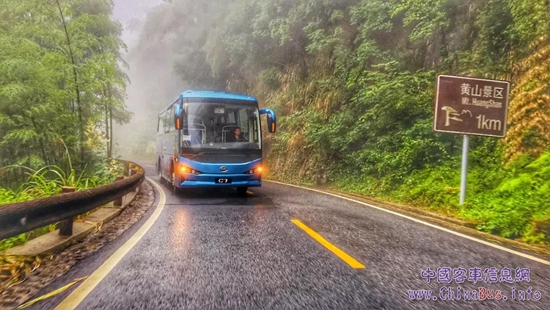 6月中旬,比亞迪C7純電動客車駛?cè)朦S山,在層巒疊嶂間開啟了一段艱險(xiǎn)征途。