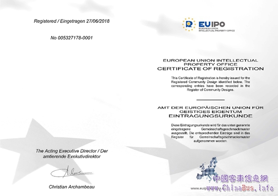 相信,借助金旅客車在全球的市場影響力,歐盟外觀專利加身的領航者,定會在中國高端客車的國際化之路上加速馳騁。
