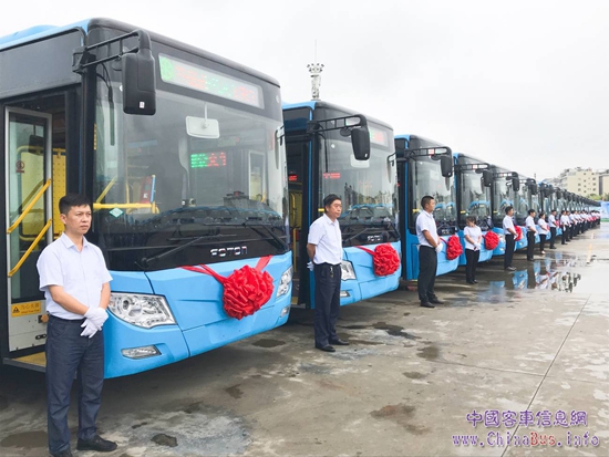 【整裝待發(fā)的福田歐輝新能源公交車】