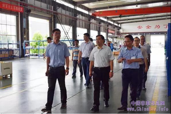 南寧市委常委、副市長周中(右二)帶隊(duì)參觀廣西申龍生產(chǎn)車間
