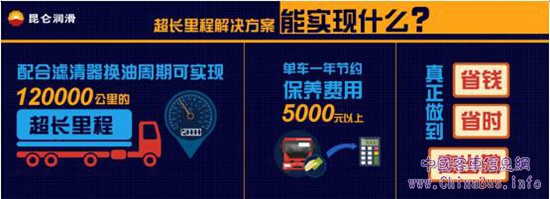 昆侖潤滑超長里程解決方案中主要包含三大長壽命產(chǎn)品,即D12長壽命柴油機油、MTF18長壽命手動變速箱油和GL-5+長壽命重負荷車輛齒輪油。三大產(chǎn)品技術領先,不但應用地域廣,且性能卓越,能夠有效控制油品黏度增長及活塞沉積物的生成,節(jié)約維護成本,提高車輛運營效率。除長壽命產(chǎn)品外,還提供專家技術支持、配套車隊加油卡、油品監(jiān)測、同里程換油等諸多潤滑服務,產(chǎn)品和服務相輔相成,事半功倍。