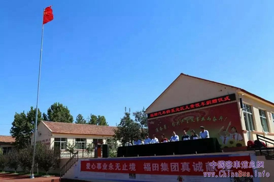 2018年9月4日,福田歐輝VI校車捐贈儀式在臨朐縣東城街道上莊小學隆重舉行,福田商用汽車集團副總裁鐘明華、福田汽車濰坊廠區(qū)黨委常務副書記王偉先、臨朐縣副縣長張惠玉等出席了捐贈交車儀式,以實際行動助力濰坊災后重建。