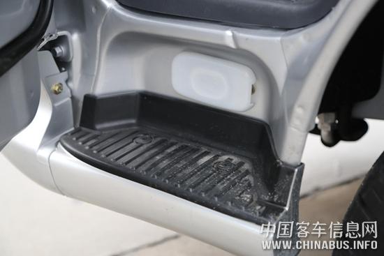 車門打開,一級踏步距離地面高度約為394mm,二級踏步高度約為180mm,加之車門開度很大,上下車并不費勁。進(jìn)入車內(nèi),第一感覺是車內(nèi)沒有什么味道,要知道直到現(xiàn)在,新車異味仍是很多國產(chǎn)汽車廠家的通病。其次感覺車內(nèi)十分寬敞明亮,簡單的設(shè)計保證了最佳的視野。