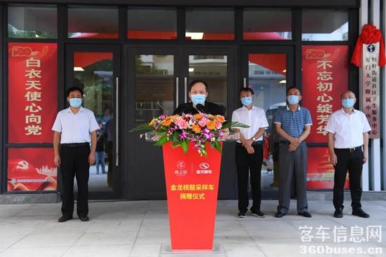 9月30日,廈門金龍聯(lián)合汽車工業(yè)有限公司與廈門燕之屋生物工程股份有限公司在廈門市思明區(qū)梧村街道社區(qū)衛(wèi)生服務(wù)中心共同舉辦了“金龍移動核酸采樣車”交車儀式。廈門市衛(wèi)健委應(yīng)急辦主任王德猛,思明區(qū)衛(wèi)健局局長雷樹民,梧村街道社區(qū)衛(wèi)生服務(wù)中心主任陳文普,燕之屋董事長黃健,金龍汽車集團(tuán)黨委副書記、副董事長、金龍客車董事長謝思瑜等出席。