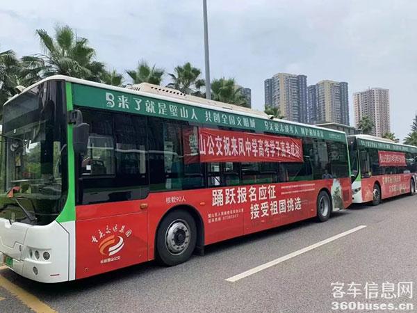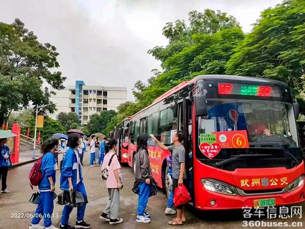 中車“愛(ài)心送考”車身披紅色外衣