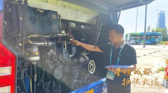 宇通服務(wù)保障團(tuán)隊(duì)進(jìn)行車輛檢查、維護(hù)