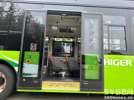 此批蘇州金龍海格超充純電動公交車為一級踏步低入口設(shè)計,后門采用塞拉門,車廂內(nèi)還設(shè)置了行李放置區(qū),對于乘坐該線趕高鐵的旅客們非常友好。