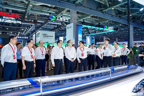 展會開幕當天,中國中車展臺吸引了來自國家部委、當?shù)卣I導,國內(nèi)外各領域的行業(yè)專家、企業(yè)代表以及媒體記者駐足參觀交流。工業(yè)和信息化部黨組書記、部長李樂成,上海市委副書記、市長龔正等領導蒞臨中國中車展臺,中國中車總經(jīng)濟師譚沐詳細介紹了以時速600公里高速磁浮列車、CR450動車組為代表的軌道交通裝備發(fā)展成果和未來應用前景。