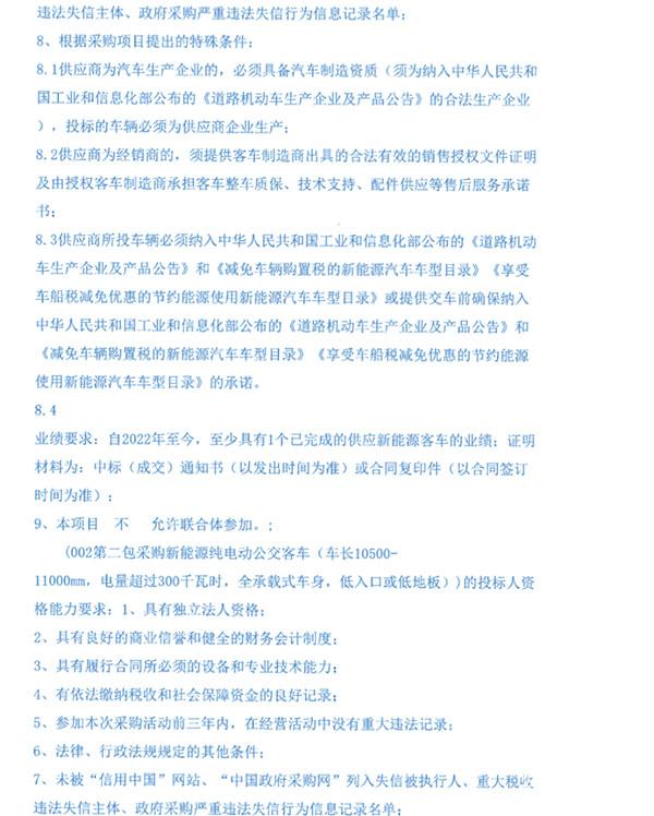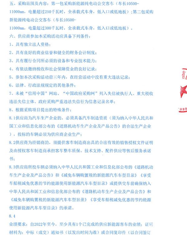 新能源純電動公交客車采購項目