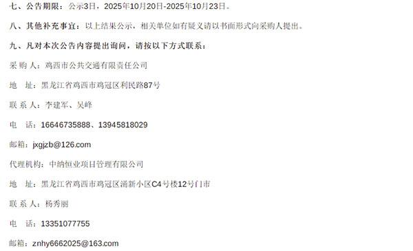 黑龍江省雞西市公共交通有限責(zé)任公司新能源公交車更新項(xiàng)目(第一批)中標(biāo)候選人公示