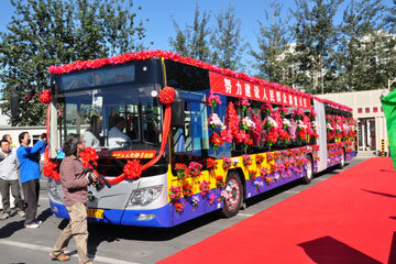 2012年9月30日,北京市首批大容量LNG清潔能源公交車投入運(yùn)營儀式在靛廠新村1路公交總站舉行。北京市副市長茍仲文、北京市政府副秘書長周正宇出席儀式,這標(biāo)志著北京市公交車輛節(jié)能減排工作的新開端,也是北京市為國慶63周年和喜迎黨的“十八大”召開獻(xiàn)上的一份厚禮。