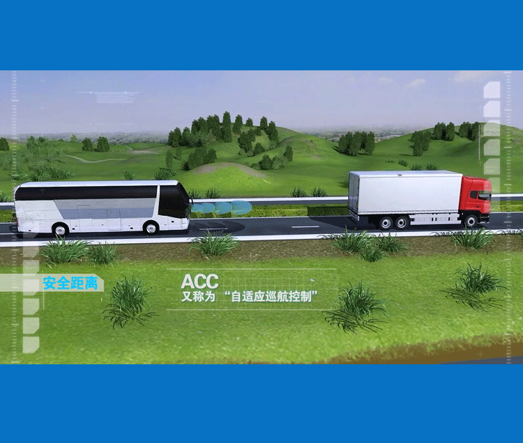 青年ACC 系統(tǒng)的控制目標(biāo)是適當(dāng)?shù)乜刂栖囕v的速度,保持車輛間安全距離:在車輛行駛過程中,安裝在車輛前部的車距傳感器持續(xù)掃描車輛前方道路,同時(shí)輪速傳感器采集車速信號。當(dāng)與前車之間的距離過小時(shí),青年ACC控制單元可以通過與制動防抱死系統(tǒng)、發(fā)動機(jī)控制系統(tǒng)協(xié)調(diào)動作,使車輪適當(dāng)制動,并使發(fā)動機(jī)的輸出功率下降,以使車輛與前方車輛始終保持安全距離。自適應(yīng)巡航控制系統(tǒng)在控制車輛制動時(shí),通常會將制動減速度限制在不影響舒適的程度,當(dāng)需要更大的減速度時(shí),ACC控制單元會發(fā)出聲光信號通知駕駛者主動采取制動操作。當(dāng)與前車之間的距離增加到安全距離時(shí),ACC控制單元控制車輛按照設(shè)定的車速行駛。