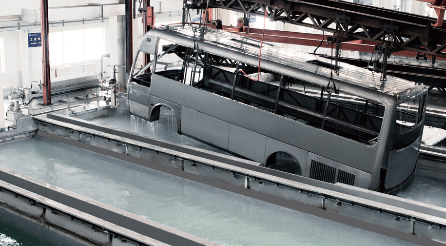 宇通投資2億多元建造的全自動(dòng)電泳生產(chǎn)線,是全球最先進(jìn)、規(guī)模最大的大客車陰極電泳涂裝生產(chǎn)線。應(yīng)用宇通電泳技術(shù),電泳后的漆膜可使車輛耐鹽霧大于1000小時(shí),整車防腐能力、美觀度均可大大提高。