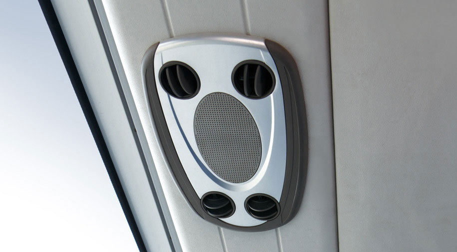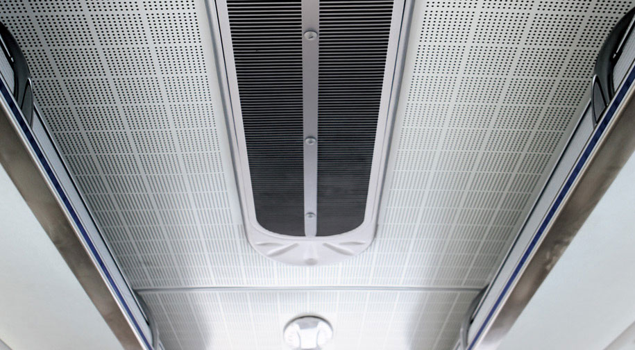 • 宇通ZK6117H2Y/HQ2 大氣中頂:使用沖孔鋁塑板,材質(zhì)具有吸聲、表面抗老化、明亮耐臟、可擦洗的特點,整車層次感好,視覺上可拉高車內(nèi)空間。