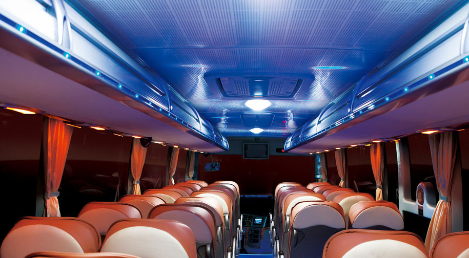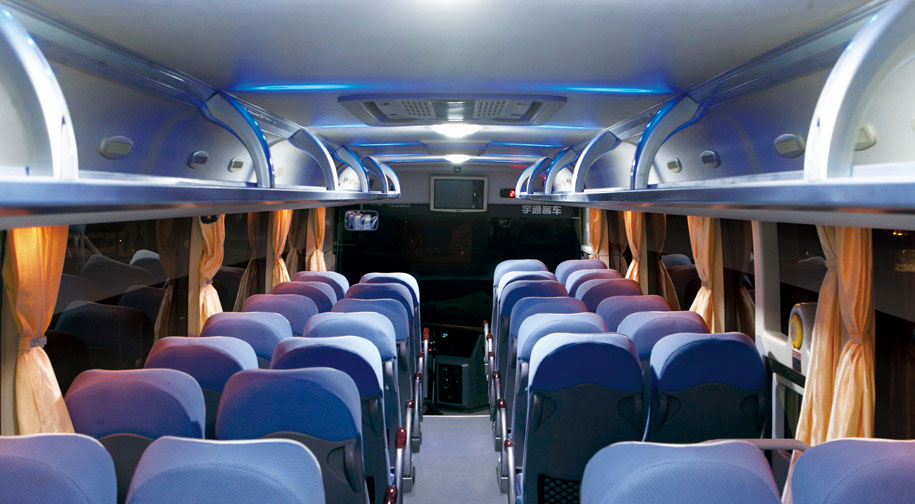 • 宇通ZK6117H2Y/HQ2 時尚內(nèi)頂燈:新式家居化內(nèi)頂燈設(shè)計,風(fēng)格時尚、曲線流暢;星空式中頂:塑鋁板材質(zhì)的中頂,通過藍(lán)色裝飾燈光的巧妙運用,形成幽藍(lán)璀璨的星空效果。