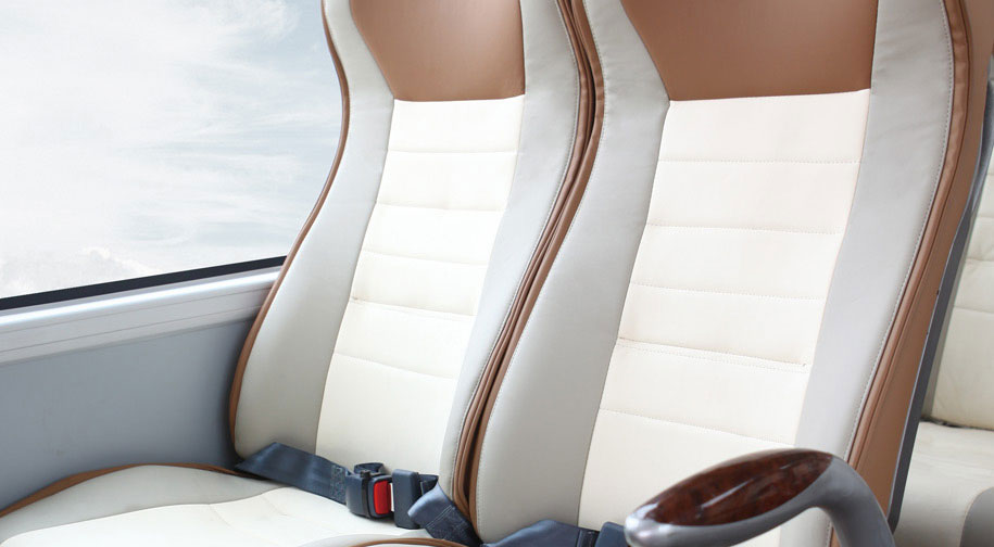 • 宇通ZK6109H2Y/Z 新型座椅:緯編布座椅套,透氣性好;頭枕采用皮革材質(zhì),耐磨性好;座椅內(nèi)部新型環(huán)保海綿,無刺激性氣味;左右兩個座位互相獨立設(shè)計,且頭部支撐效果更佳;改善座椅結(jié)構(gòu),后排乘客可將腿伸至前排座椅下;精致新穎扶手,可負(fù)荷200KG;極富手感的背拉手與座椅靠背渾然一體。