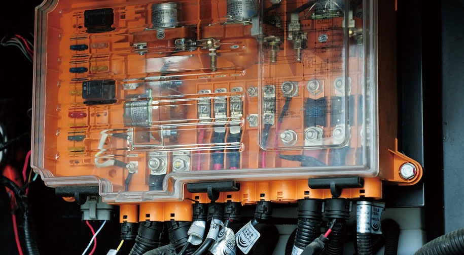 電瓶倉(cāng)內(nèi)后封閉繼電器盒采用透明材質(zhì)封閉,人性化設(shè)計(jì),檢修方便。