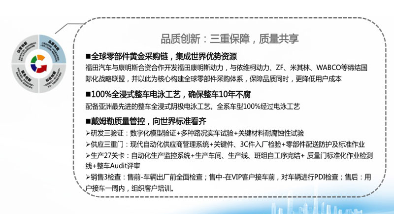 2013年8月9日,福田歐輝對外正式發(fā)布了CVC(Creative value chain)全價值鏈創(chuàng)新戰(zhàn)略,該戰(zhàn)略是以客車用戶運(yùn)營需求為導(dǎo)向、以福田歐輝全價值鏈整合創(chuàng)新體系為基礎(chǔ)、以實現(xiàn)客車用戶價值為目標(biāo)的“可持續(xù)競爭戰(zhàn)略”。