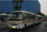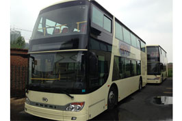 安凱客車:哈爾濱觀光雙層巴士駕到 2013年8月,哈爾濱開通了兩條沿江旅游觀光巴士線路,9輛嶄新的安凱雙巴車已運抵哈爾濱市,投入到開通的沿江觀光線路中。這批旅游觀光車車身長度為12米,一層設(shè)有駕駛室、樓梯通道及前后車門,內(nèi)部座椅只有14個。通過位于駕駛室后面的樓梯走上二層,座椅共45個,空間寬敞。