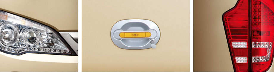 簡(jiǎn)潔時(shí)尚,造型曲線富有流線感。前大燈首家采用燈殼免底涂磨砂工藝,并采用雙遠(yuǎn)光配置與近光燈電動(dòng)調(diào)節(jié)裝置。
