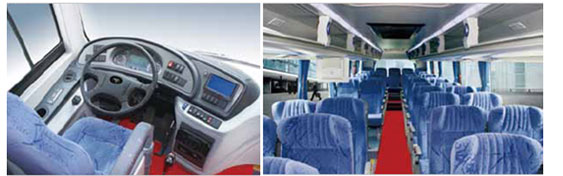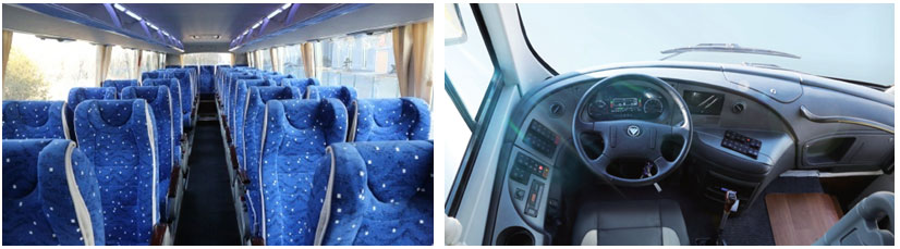 前、中鋁合金乘客門(mén)、鋁合金艙門(mén);福田歐輝J型座椅,17寸液晶電視;CAN總線(xiàn)儀表;松芝空調(diào);雙邊行李架; |