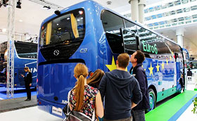 | 2014年德國(guó)漢諾威商用車(chē)展于2014年9月25日-10月2日在德國(guó)漢諾威舉行。IAA車(chē)展從1897年舉辦至今,已有100多年的歷史,是全球最古老的專(zhuān)業(yè)展覽會(huì)之一,也是目前全球最具影響力的商用車(chē)展覽和貿(mào)易交流會(huì),展會(huì)將集中展示全球商用車(chē)的最新車(chē)型產(chǎn)品和技術(shù)發(fā)展趨勢(shì)。作為我國(guó)客車(chē)行業(yè)的領(lǐng)導(dǎo)者,大金龍已經(jīng)連續(xù)參加了四屆,保持著中國(guó)客車(chē)在歐洲車(chē)展上的最高曝光率,吸引眾多國(guó)內(nèi)外媒體的眼球。在歷屆IAA展會(huì)上,大金龍的重磅新品無(wú)一例外給歐洲客戶(hù)帶來(lái)極大驚喜。而在本次展會(huì)上,全新升級(jí)版的金龍展車(chē),將再一次代表中國(guó)客車(chē)站在世界頂級(jí)車(chē)展上,引領(lǐng)歐洲綠色風(fēng)尚。 |