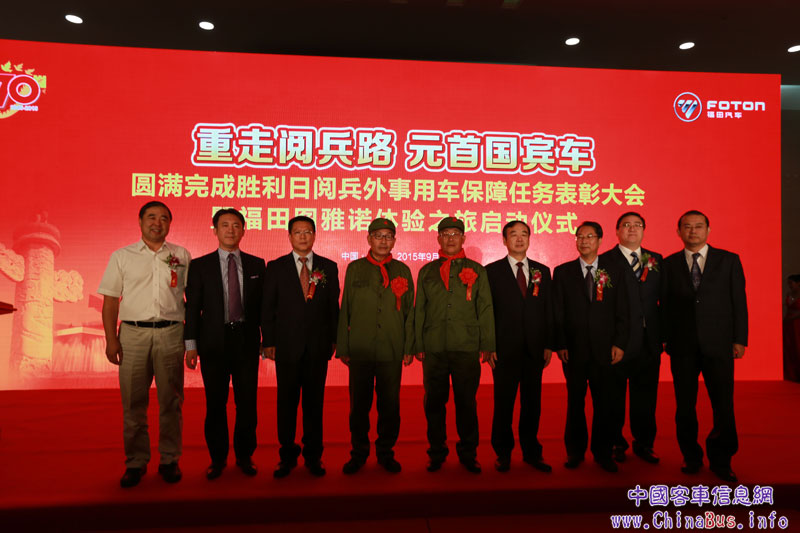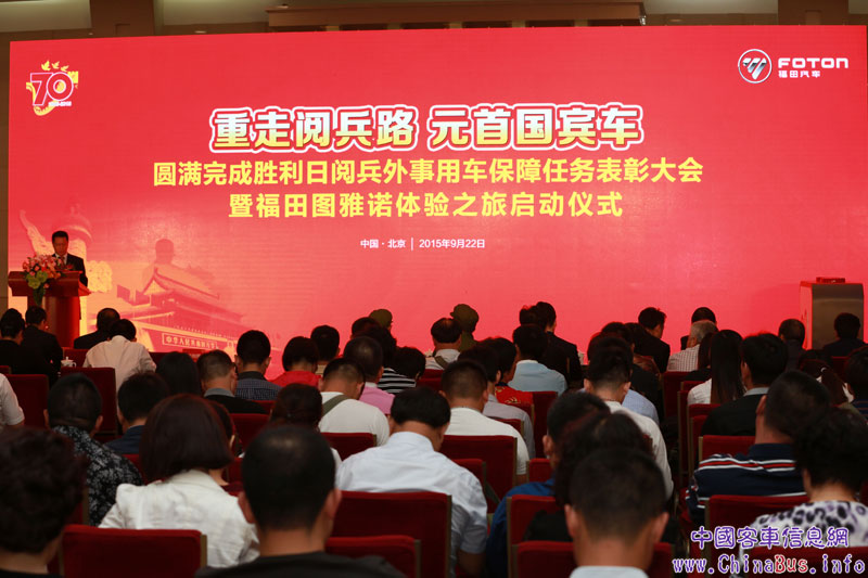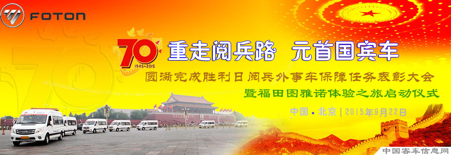 導(dǎo)讀:9月3日,在中國(guó)人民抗日戰(zhàn)爭(zhēng)暨世界反法西斯戰(zhàn)爭(zhēng)勝利70周年紀(jì)念活動(dòng)上,31位國(guó)家元首及19位政府高級(jí)別代表、10位國(guó)際和地區(qū)組織負(fù)責(zé)人全程乘坐全新一代元首國(guó)賓車——福田圖雅諾出行,成為全球萬(wàn)眾矚目的焦點(diǎn)。9月22日,“圓滿完成勝利日閱兵外事用車保障任務(wù)表彰大會(huì)暨福田圖雅諾‘致敬老兵計(jì)劃’體驗(yàn)之旅”活動(dòng)在北京人民大會(huì)堂舉行,表彰大會(huì)上,北京市人民政府外事辦公室分別對(duì)四大汽車租賃公司進(jìn)行了表彰,福田汽車獲“品質(zhì)過(guò)硬,保障有力”的榮譽(yù)稱號(hào)。 |