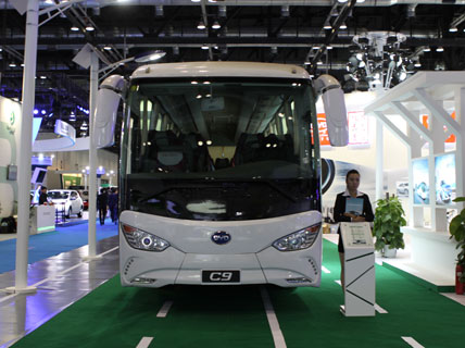 10月21日,2015國(guó)際節(jié)能與新能源汽車成果展在北京開(kāi)幕。比亞迪攜四款產(chǎn)品亮相,包括一款純電動(dòng)大巴C9及3款乘用車。其中,C9純電動(dòng)大巴,車身長(zhǎng)12米,核載53人,搭載比亞迪自主研發(fā)的鐵電池及輪邊驅(qū)動(dòng)技術(shù),擁有360千瓦最大功率和3000牛米的最大扭矩,最高車速超過(guò)100公里每小時(shí),續(xù)航里程達(dá)300公里以上,充電時(shí)間僅需1至2個(gè)小時(shí)。今年9月,比亞迪C9成為2015大連夏季達(dá)沃斯年會(huì)指定用車,并圓滿完成大會(huì)交通保障工作。[詳細(xì)]