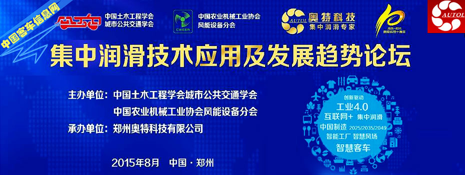 創(chuàng)新驅(qū)動(dòng)工業(yè)4.0、互聯(lián)網(wǎng)+集中潤(rùn)滑、中國(guó)制造2025/2035/2049、智能工廠、智慧客車(chē)……這些關(guān)鍵詞出現(xiàn)在8月11日于河南鄭州舉辦的集中潤(rùn)滑技術(shù)應(yīng)用及發(fā)展趨勢(shì)論壇的主題背景板上。本次論壇由中國(guó)土木工程學(xué)會(huì)城市公共交通學(xué)會(huì)、中國(guó)農(nóng)業(yè)機(jī)械工業(yè)協(xié)會(huì)風(fēng)能設(shè)備分會(huì)主辦,鄭州奧特科技公司承辦。鄭州市科學(xué)技術(shù)學(xué)會(huì)副主席馬國(guó)明、中國(guó)土木工程學(xué)會(huì)城市公共交通學(xué)會(huì)秘書(shū)長(zhǎng)袁建光、中國(guó)公路學(xué)會(huì)客車(chē)分會(huì)秘書(shū)長(zhǎng)裴志浩、中國(guó)科學(xué)技術(shù)咨詢服務(wù)中心處長(zhǎng)馮耕等嘉賓出席論壇并致辭 [詳細(xì)]