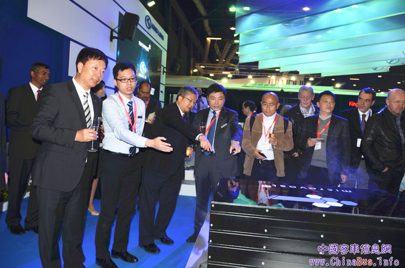 本年度大金龍參展主題為“Solution+”,寓意大金龍將在產(chǎn)品、服務(wù)、安全、節(jié)能等方面繼續(xù)發(fā)力,提供完美的客運(yùn)系統(tǒng)解決方案。展會(huì)首日召開了新品發(fā)布會(huì),重點(diǎn)推介E12及C9、B10三款符合歐六標(biāo)準(zhǔn)的精品客車,同時(shí)現(xiàn)場(chǎng)揭幕“金龍易驅(qū)插電式混聯(lián)系統(tǒng)運(yùn)行原理”演示沙盤,這是中國(guó)自主電控系統(tǒng)首次海外亮相。