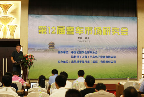 8月29日,第12屆客車市場(chǎng)研究會(huì)在湖北武漢召開。本屆會(huì)議由中國(guó)公路學(xué)會(huì)客車分會(huì)和歐科佳(上海)汽車電子設(shè)備有限公司主辦,東風(fēng)揚(yáng)子江汽車(武漢)有限責(zé)任公司協(xié)辦。來自中國(guó)公路學(xué)會(huì)客車分會(huì)的領(lǐng)導(dǎo)、業(yè)內(nèi)專家、主流客車企業(yè)及零部件企業(yè)的代表共120余人參會(huì),就2015年客車市場(chǎng)發(fā)展情況進(jìn)行分析、預(yù)測(cè)。本屆會(huì)議由中國(guó)公路學(xué)會(huì)客車分會(huì)秘書長(zhǎng)胡選儒主持。