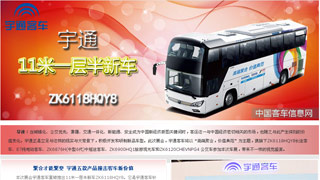 2014年北京國際道路運輸展上,宇通客車重磅推出11米一層半新車ZK6118HQY8。它是宇通客車針對中長途客運市場推出的一款高端車型,具備“大容量... 更多>>