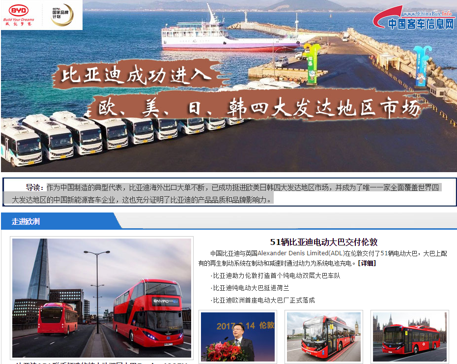 作為中國制造的典型代表,比亞迪海外出口大單不斷,已成功挺進(jìn)歐美日韓四大發(fā)達(dá)地區(qū)市場,并成為了唯一一家全面覆蓋世界四大發(fā)達(dá)地區(qū)的中國新能源客車企業(yè),這... 更多>>